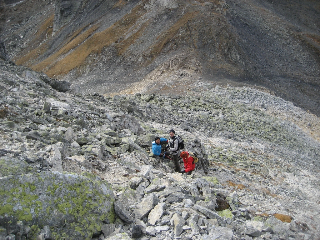 Christiane, Marina et Christophe dans le pierrier